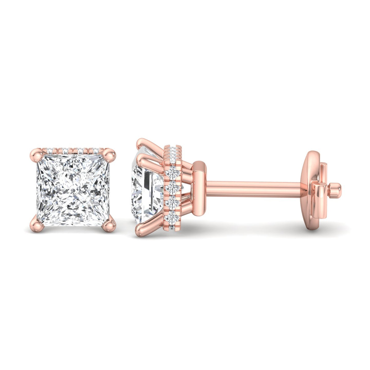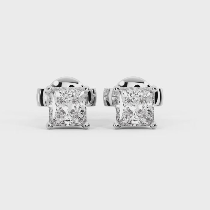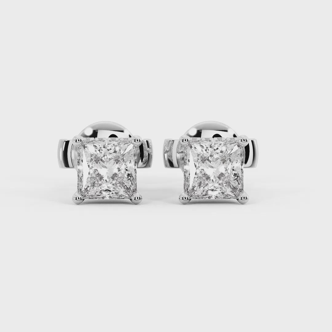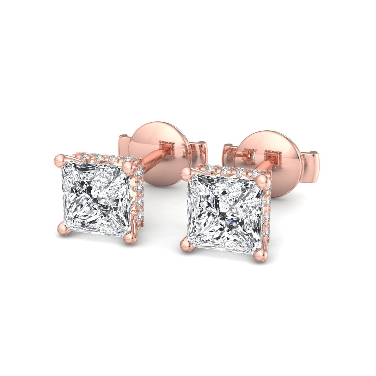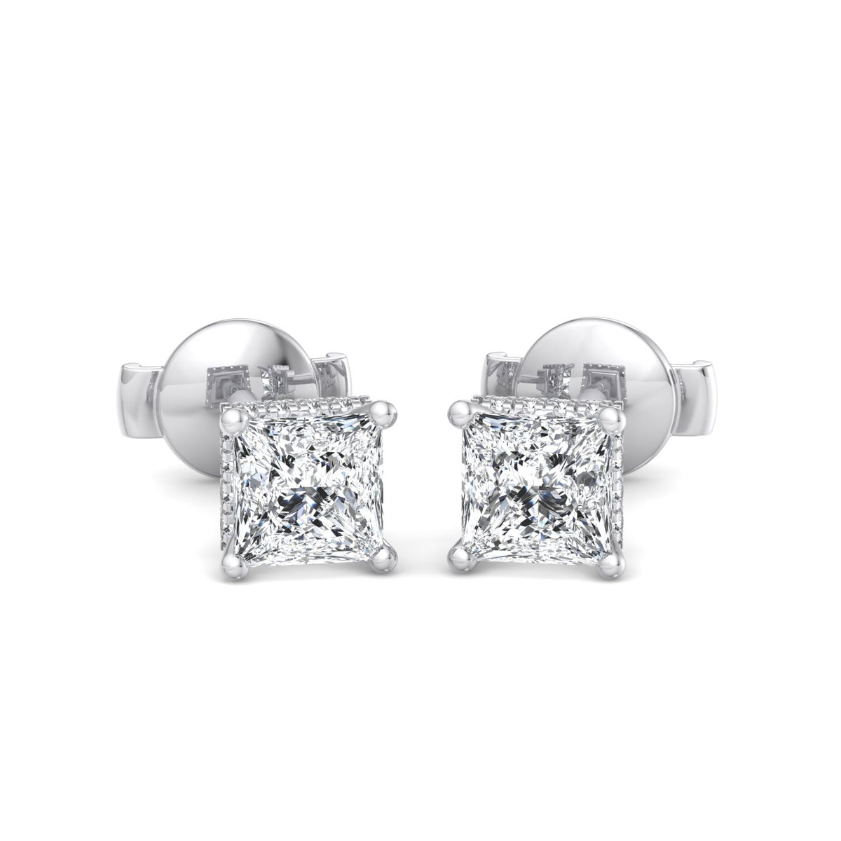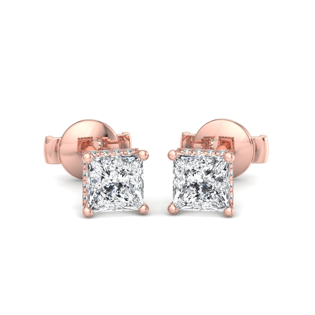 Command attention with the regal allure of Crowned Brilliance, where modern geometry meets timeless sparkle. These stunning stud earrings feature bold princess-cut diamonds, renowned for their clean edges and intense fire. Set in rich yellow gold, each central diamond is framed by a delicate halo of micro-pavé-set accent stones along the sides, adding dimension and enhancing the radiance from every angle.