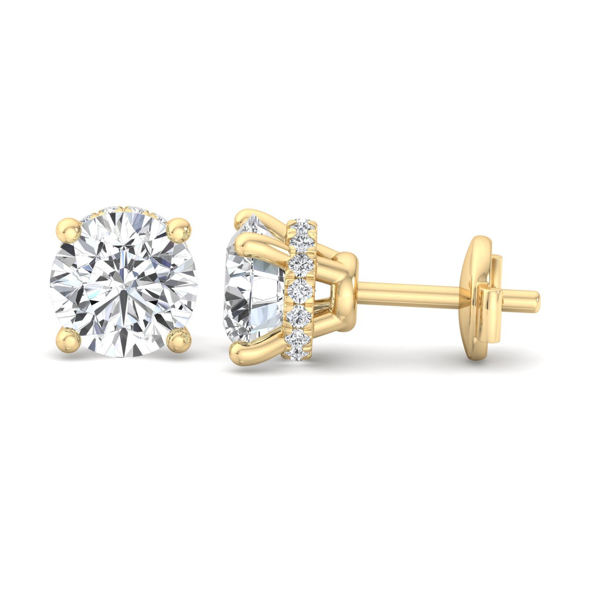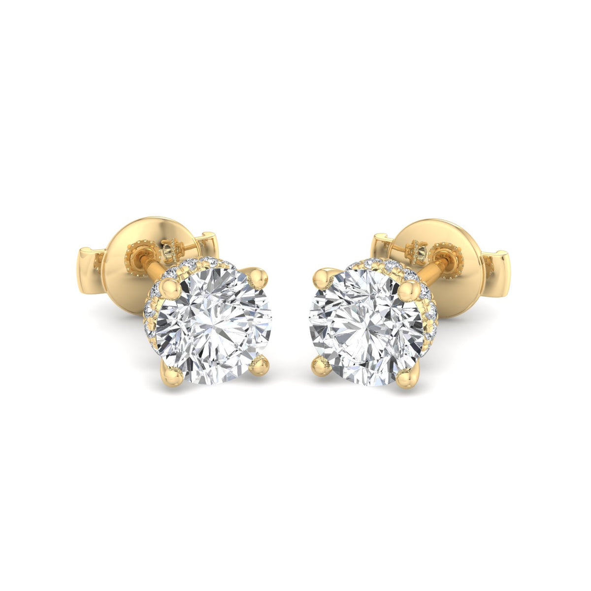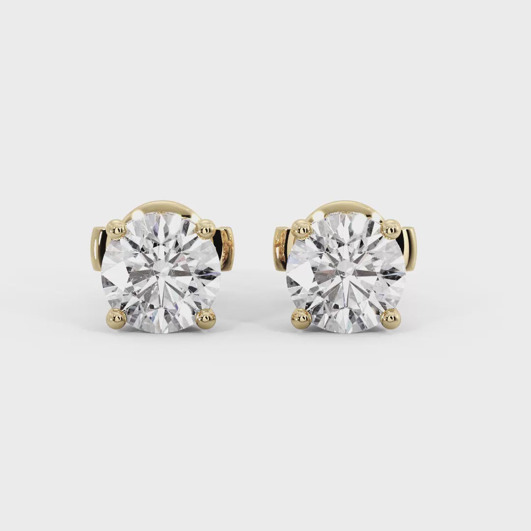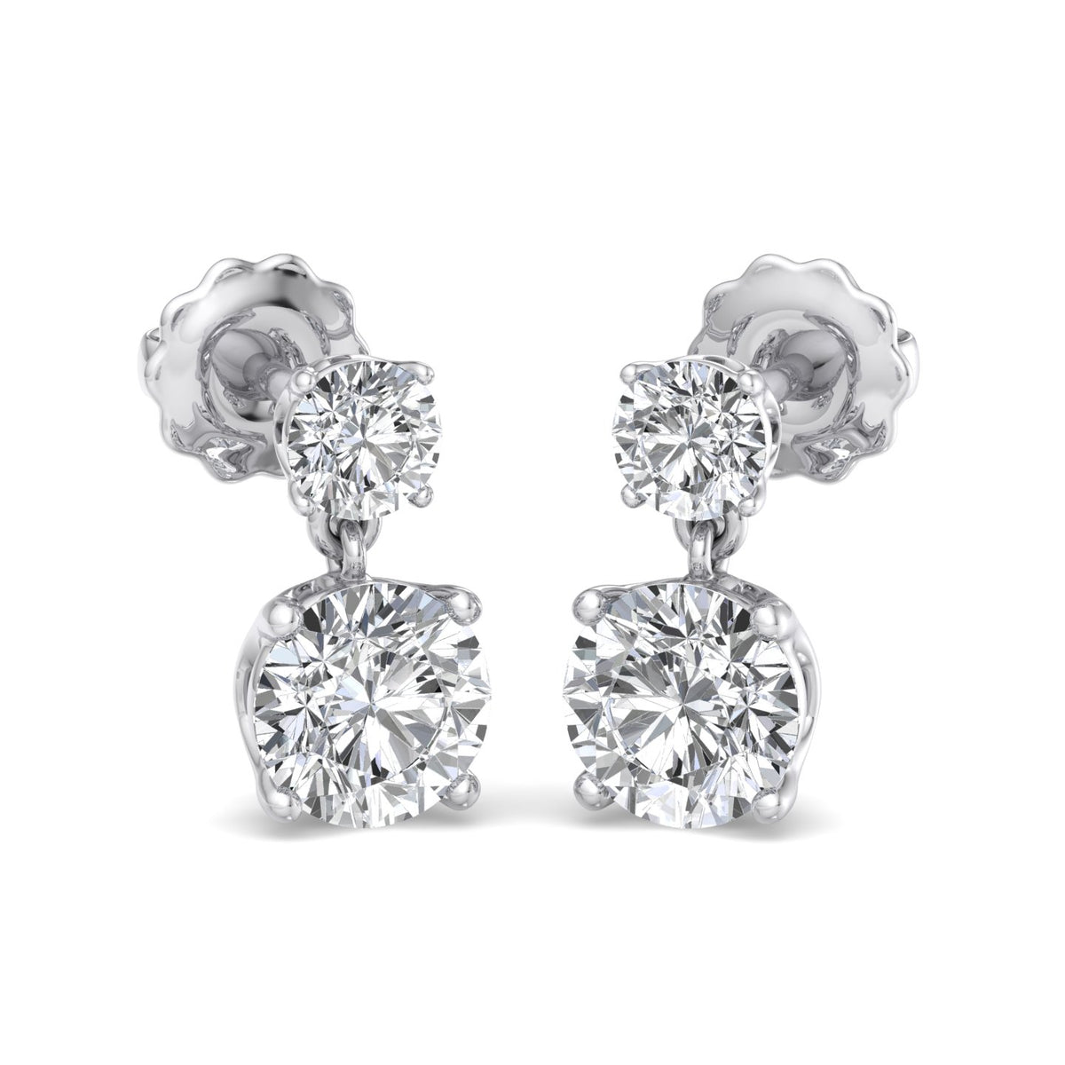 These exquisite earrings boast a sophisticated design, with two round diamonds suspended from a gold setting. The larger diamond is prominently displayed at the bottom, while the smaller one is nestled above it, creating a sense of depth and visual interest. The gold metalwork is expertly crafted, with a smooth, polished finish that catches the light.