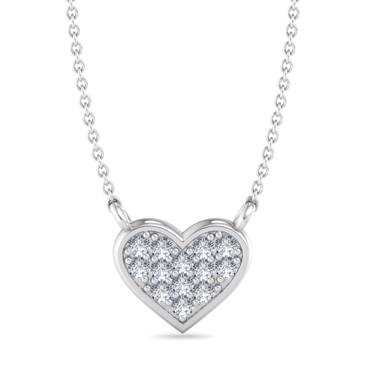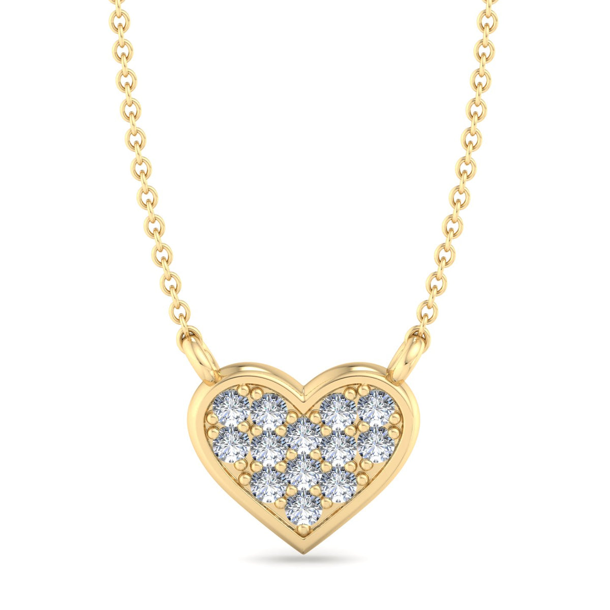 The necklace features a delicate gold chain that supports a heart-shaped pendant adorned with small diamonds, creating a sophisticated and eye-catching piece of jewelry. The gold tone adds a touch of warmth and elegance, while the diamonds embedded in the heart sparkle with refinement, making it a stunning accessory for any occasion.