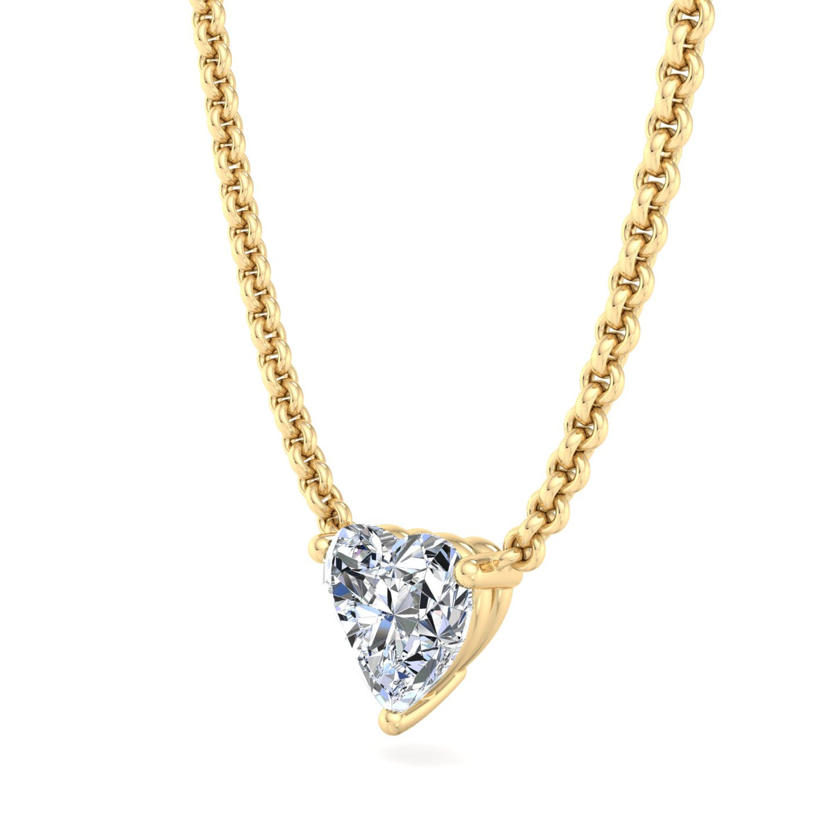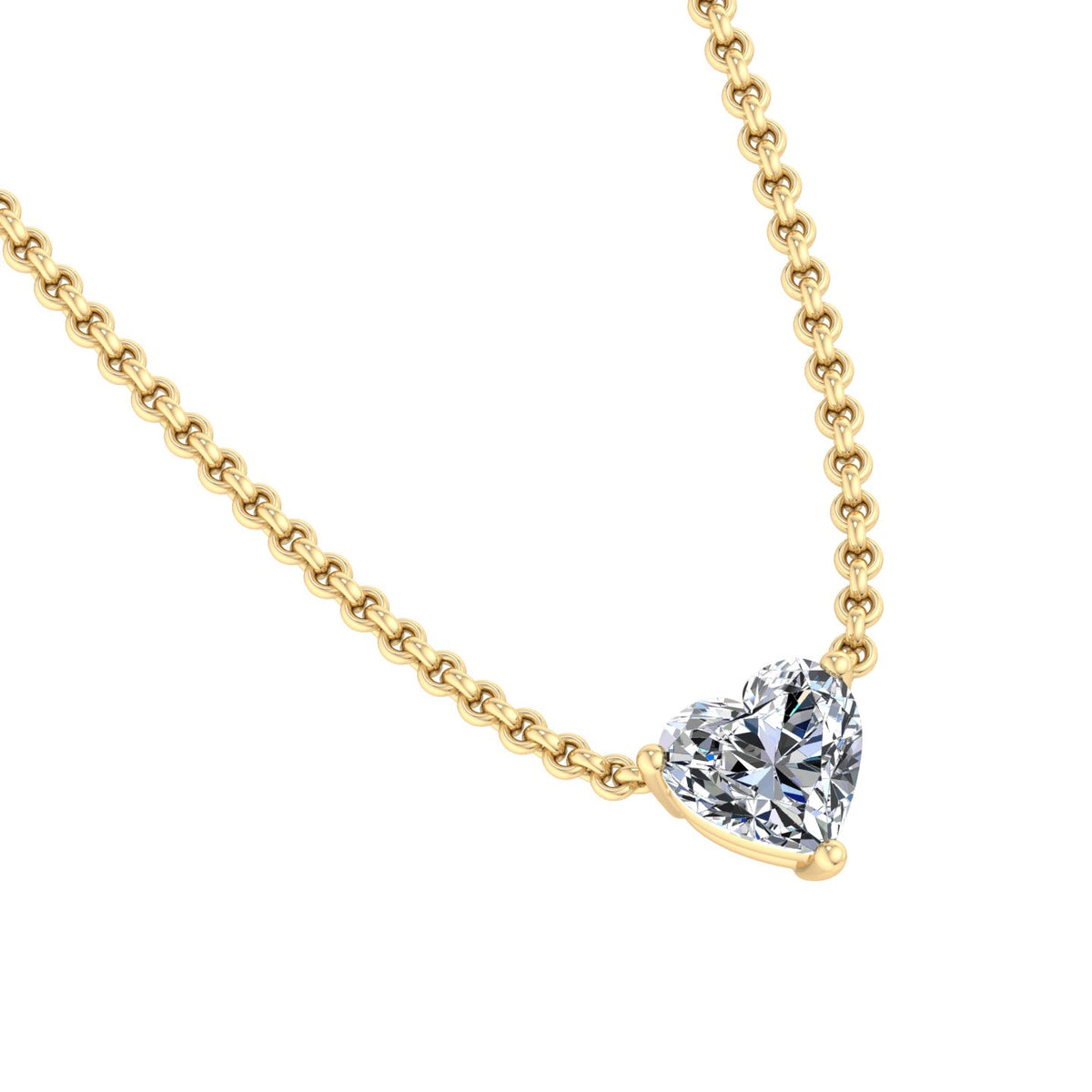 The image depicts a gold necklace featuring a large, clear gemstone pendant. The pendant is a rectangular-cut diamond or cubic zirconia, set in a four-prong gold setting and suspended from a delicate gold chain. The chain is made up of small, interlocking links that add to the overall sense of luxury and sophistication. The gemstone is expertly cut to refract light, giving it a brilliant appearance that catches the eye. The four-prong setting allows the gemstone to take center stage, while the gold chain provides a sturdy and elegant base for the pendant.
