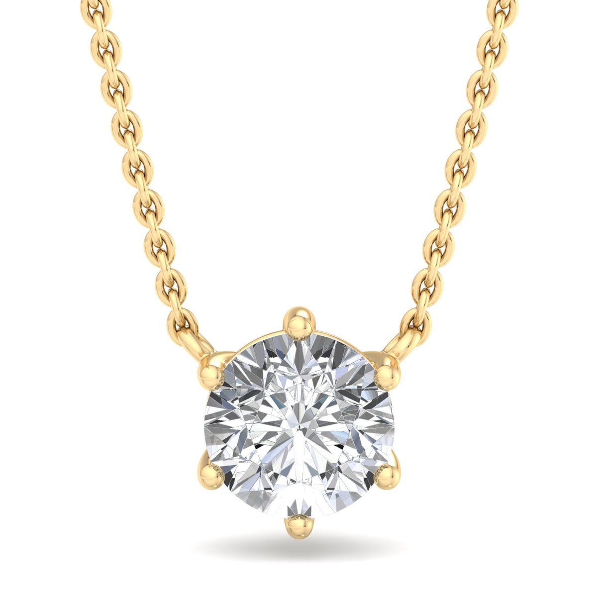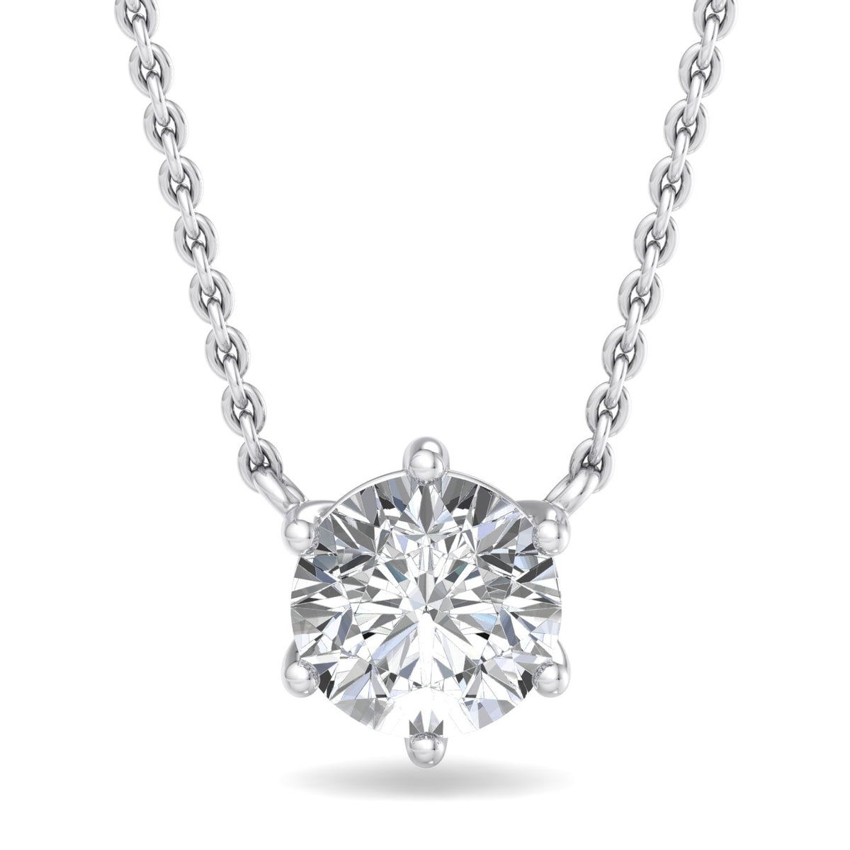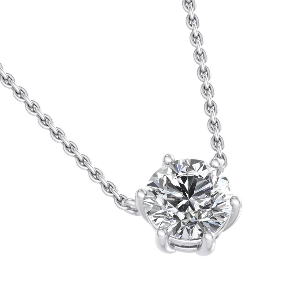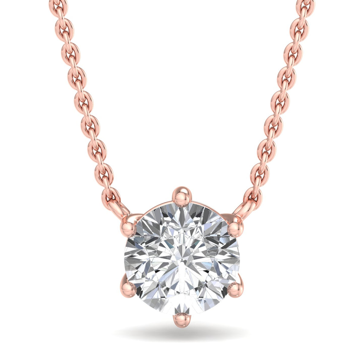 The image showcases a beautiful rose gold necklace featuring a large, round diamond or crystal pendant. The pendant is securely held in place by four prongs and is suspended from a delicate rose gold chain, creating a sophisticated and luxurious look. The overall design exudes elegance, making it suitable for formal events or as a thoughtful gift.
