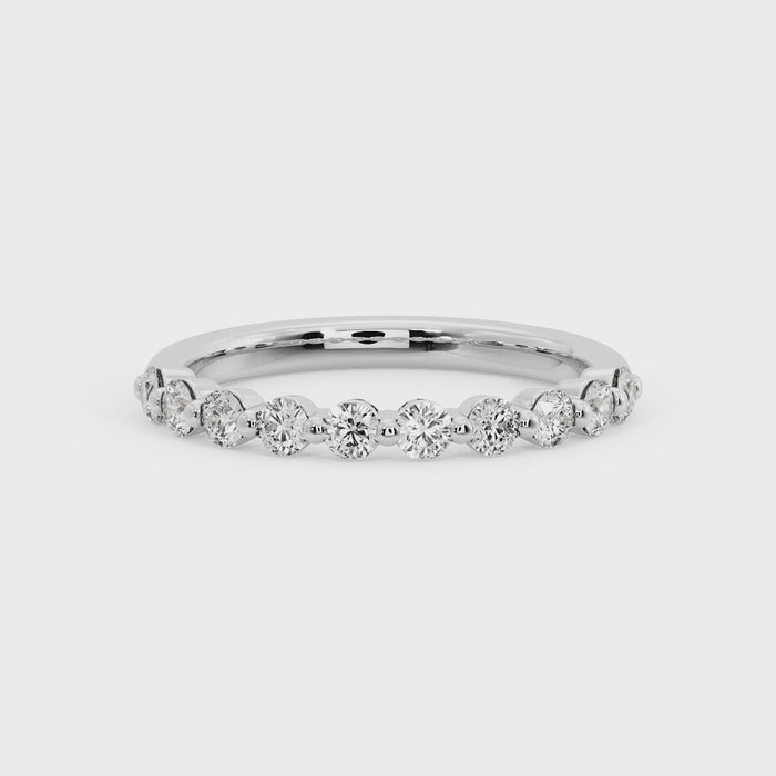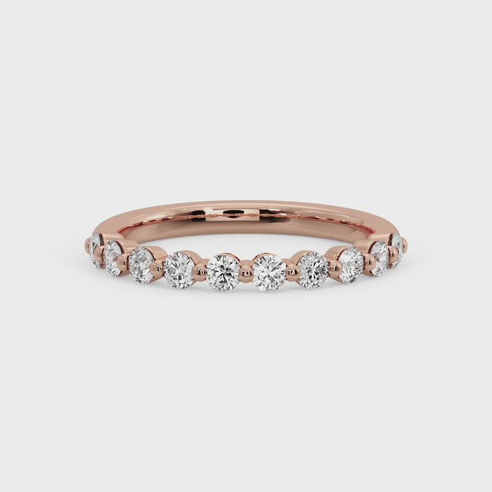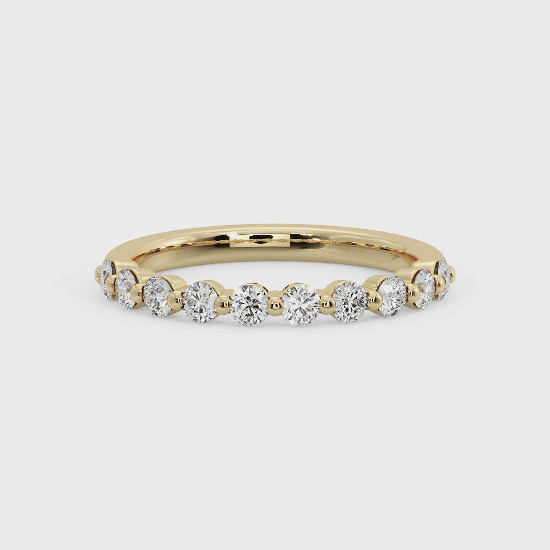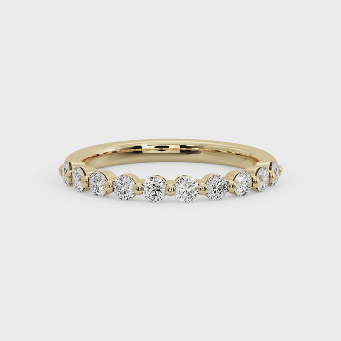 The Radiant Grace Diamond Half Eternity Band is a timeless expression of elegance. Expertly crafted in yellow gold, this ring features a perfectly aligned row of dazzling round-cut natural diamonds that shine with every movement. The classic prong setting enhances each stone's brilliance, making it an ideal choice for weddings, anniversaries, or everyday sophistication. Its sleek profile ensures comfort while maintaining its luxurious appeal — perfect as a standalone statement or for stacking with other bands.