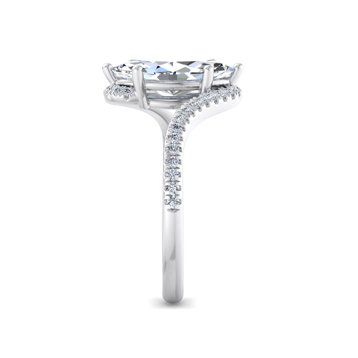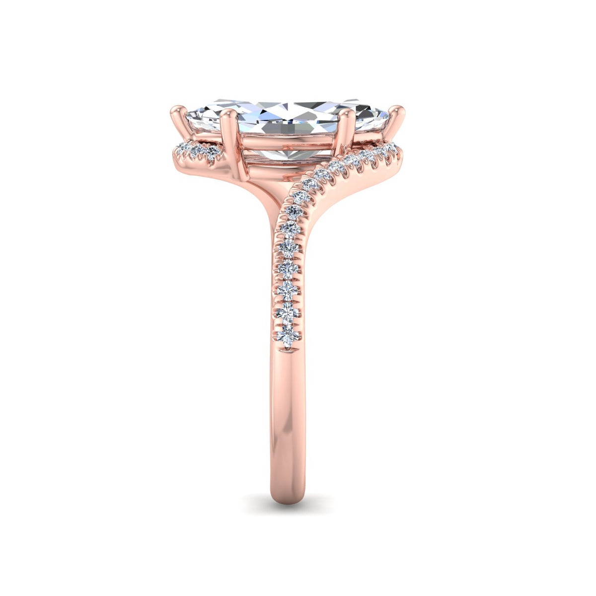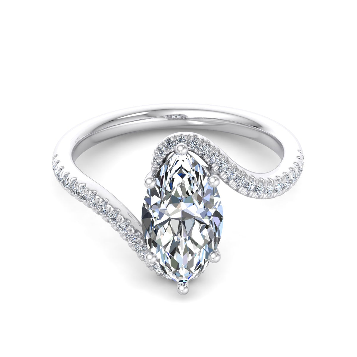 • For all solitaire diamond designs, regardless of the diamond shape (round, oval, pear, emerald, marquise, heart, etc.), we use small round diamonds arranged in a pressure setting (typically 5 to 7 pieces) to mimic the appearance of a larger solitaire.