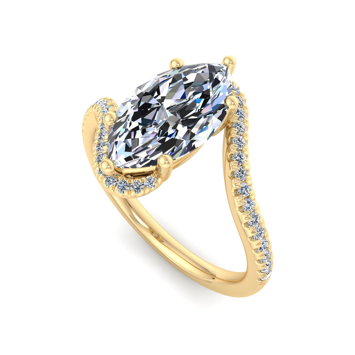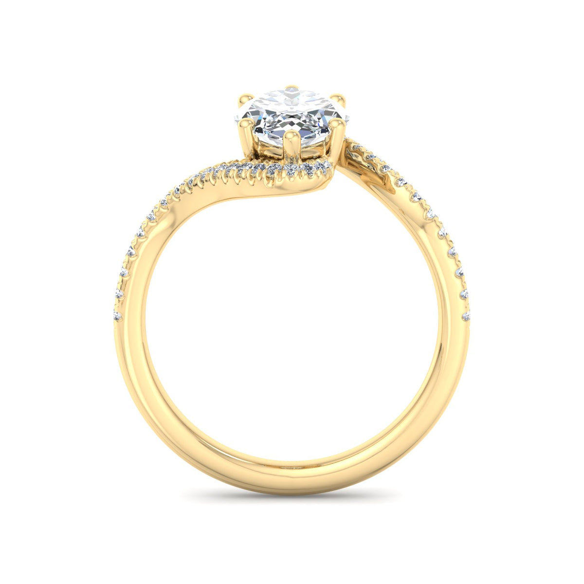 The pear-shaped diamond is securely held in place by six prongs, ensuring it remains the focal point of the ring while allowing maximum visibility and sparkle.The ring is crafted from high-quality gold, providing a luxurious feel and appearance that complements the diamonds perfectly.