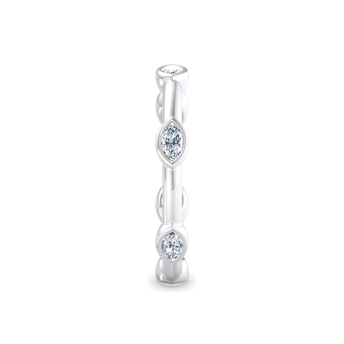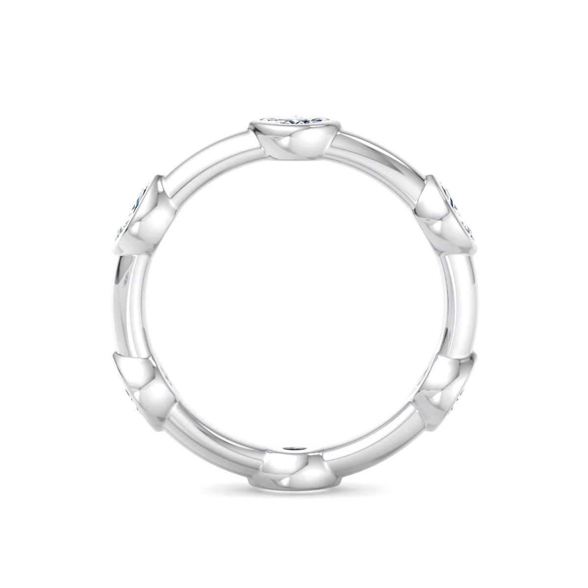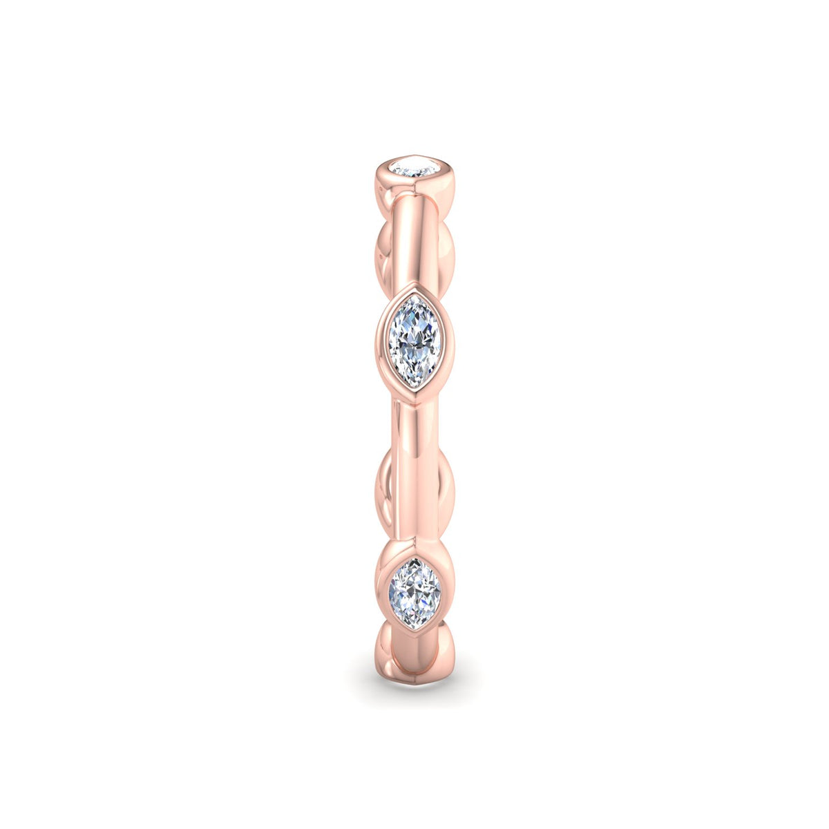 • For all solitaire diamond designs, regardless of the diamond shape (round, oval, pear, emerald, marquise, heart, etc.), we use small round diamonds arranged in a pressure setting (typically 5 to 7 pieces) to mimic the appearance of a larger solitaire.
