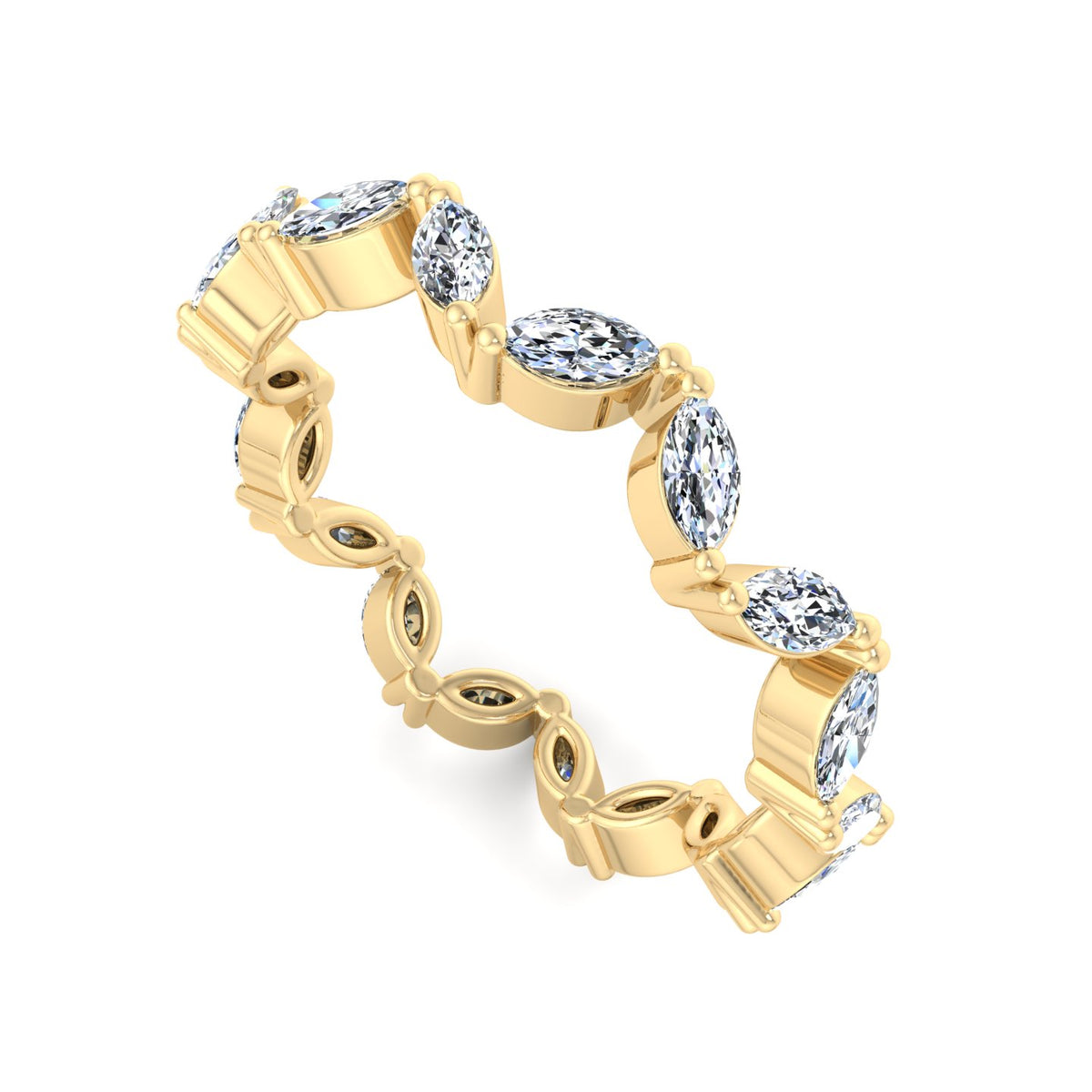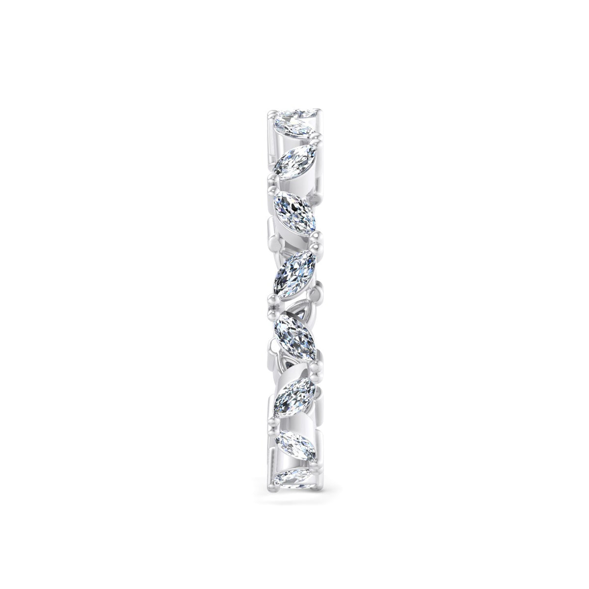 The diamonds are arranged in a continuous pattern around the band, creating a sense of movement and fluidity.The ring's design is elegant and sophisticated, making it suitable for formal occasions or everyday wear. Eternity bands like this one often symbolize eternal love and commitment, making them a popular choice for anniversary gifts or wedding bands.