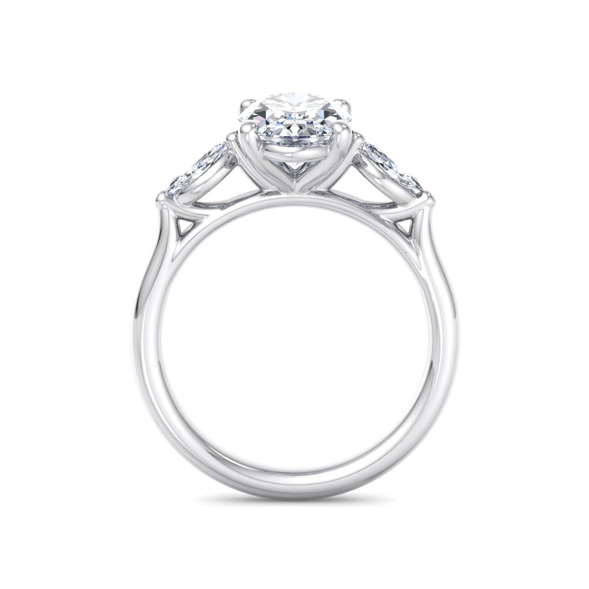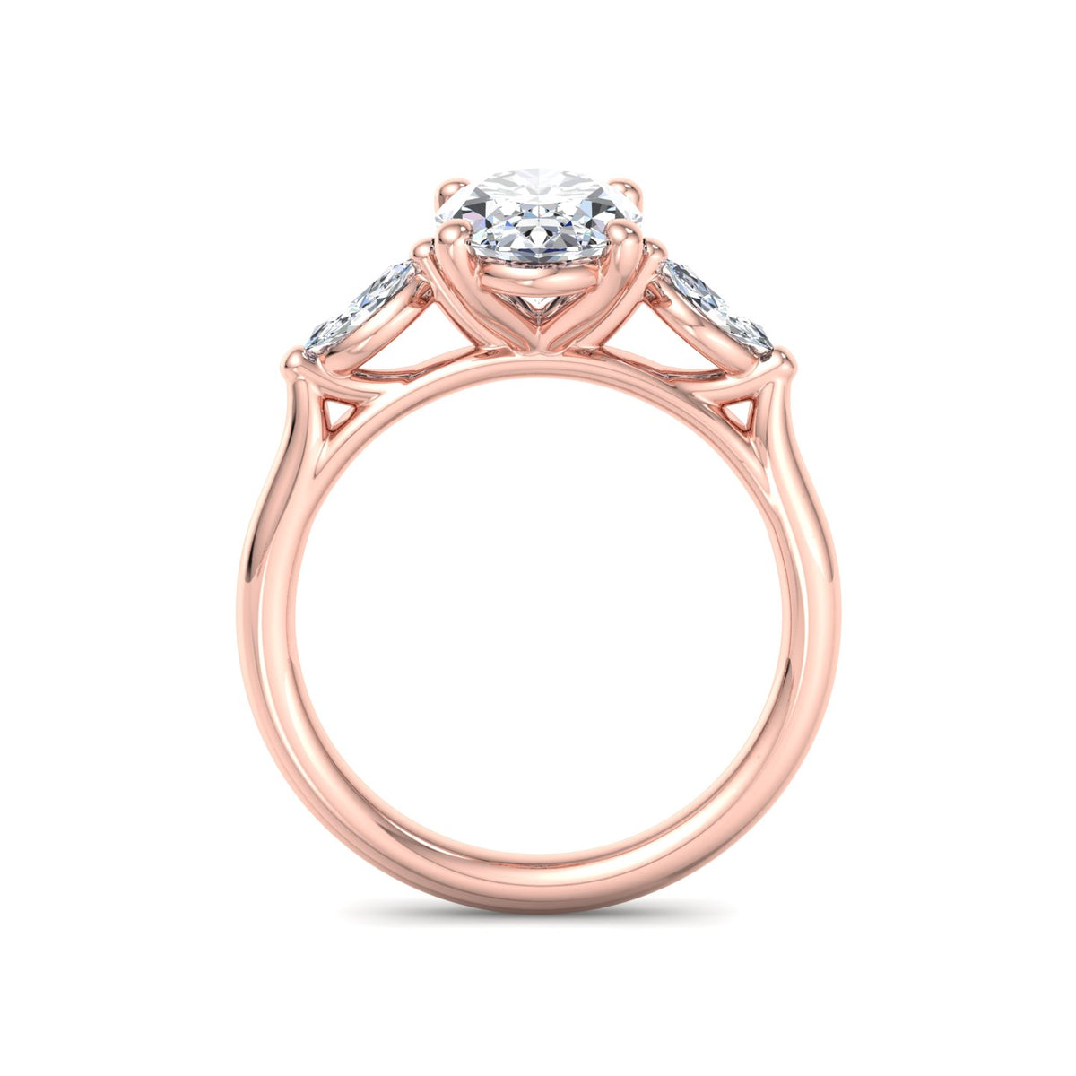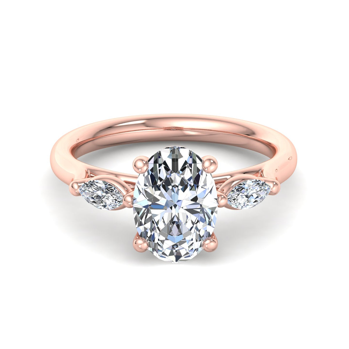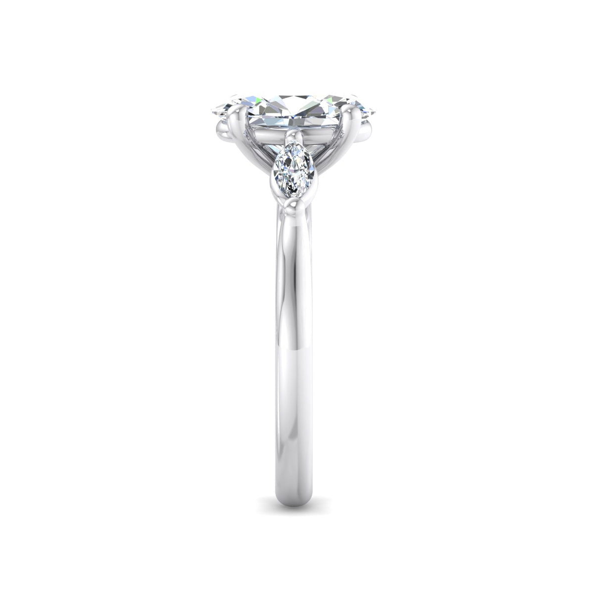 • For all solitaire diamond designs, regardless of the diamond shape (round, oval, pear, emerald, marquise, heart, etc.), we use small round diamonds arranged in a pressure setting (typically 5 to 7 pieces) to mimic the appearance of a larger solitaire.
