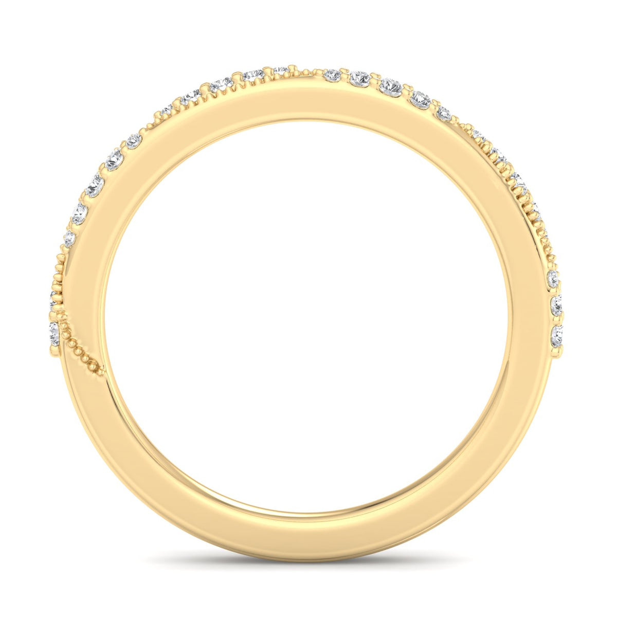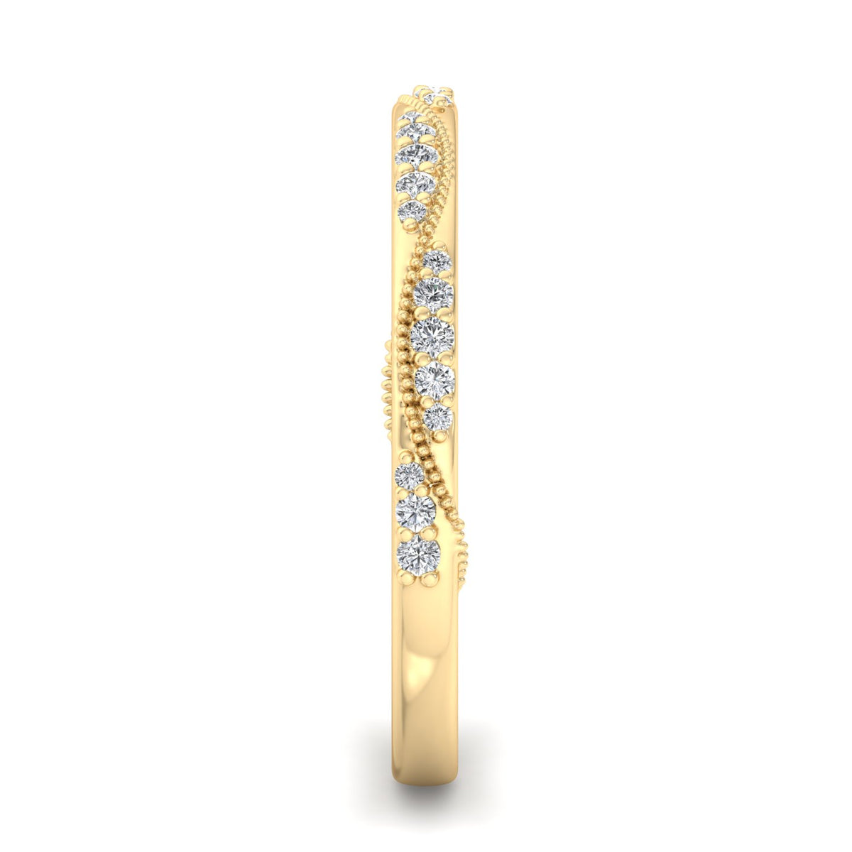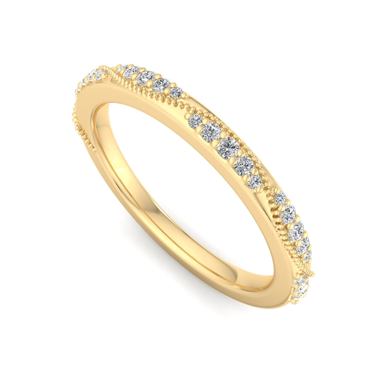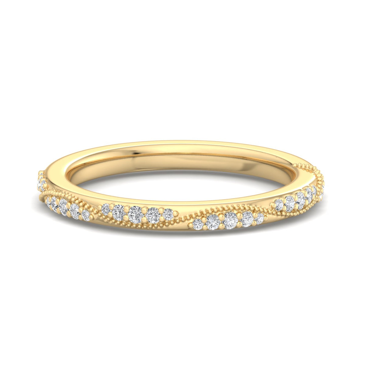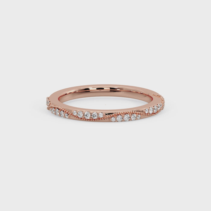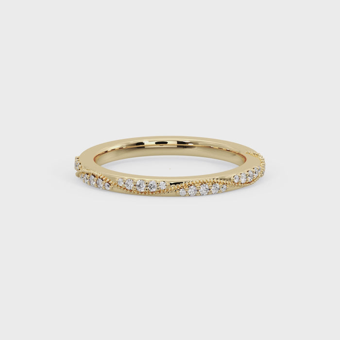 The Dainty Vine Band brings a soft, romantic flourish to classic gold. Adorned with delicate diamonds that sweep across the surface in a graceful vine-like pattern, it’s bordered with intricate milgrain beading that adds vintage charm. Crafted in warm yellow gold, this ring balances elegance and intricacy—ideal for those who love a subtle yet artistic touch. Wear it solo or stacked for added sparkle.