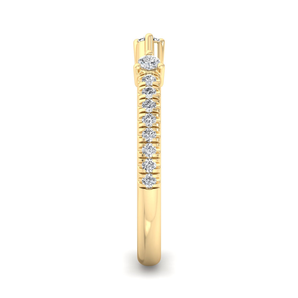 • For all solitaire diamond designs, regardless of the diamond shape (round, oval, pear, emerald, marquise, heart, etc.), we use small round diamonds arranged in a pressure setting (typically 5 to 7 pieces) to mimic the appearance of a larger solitaire.