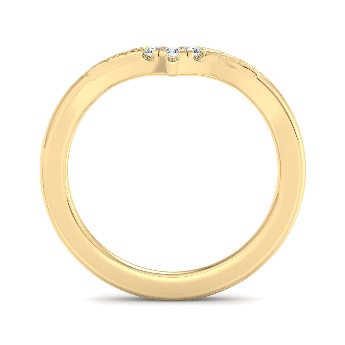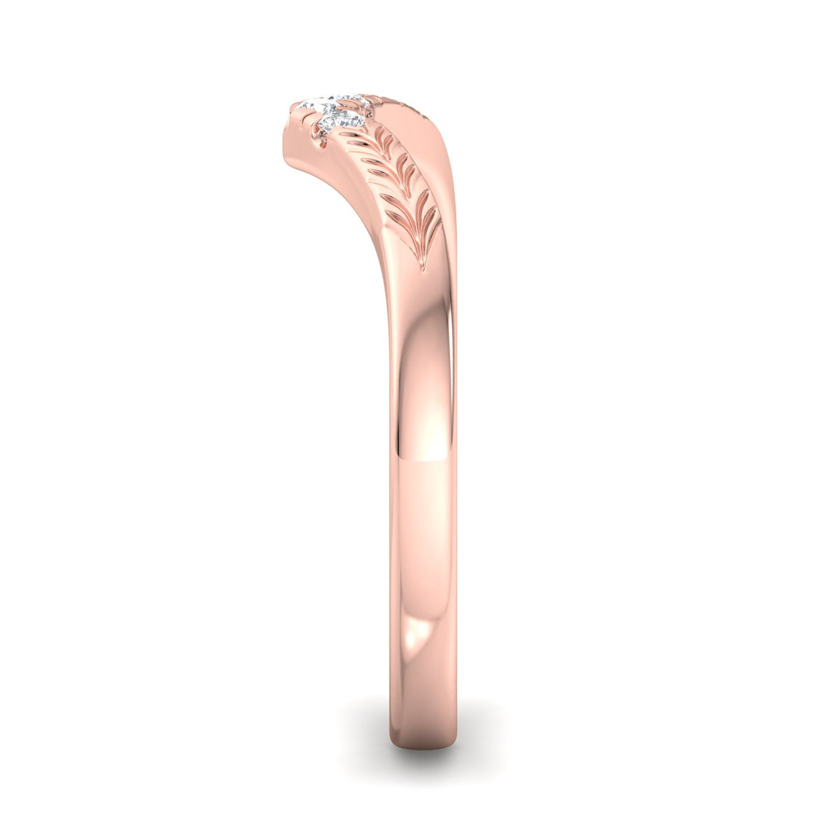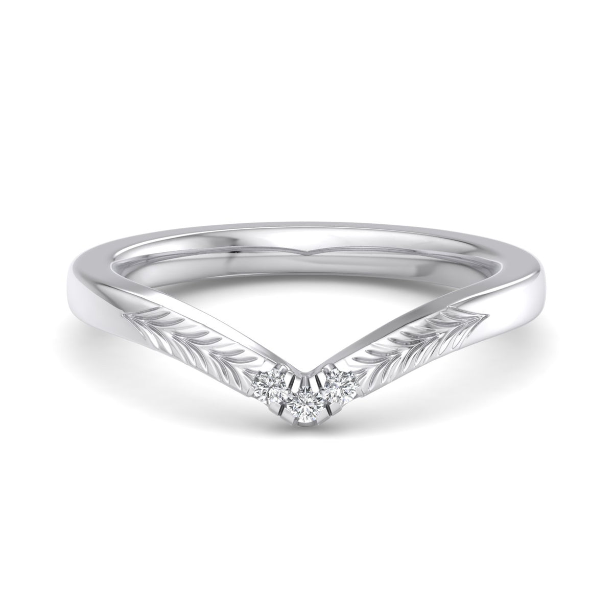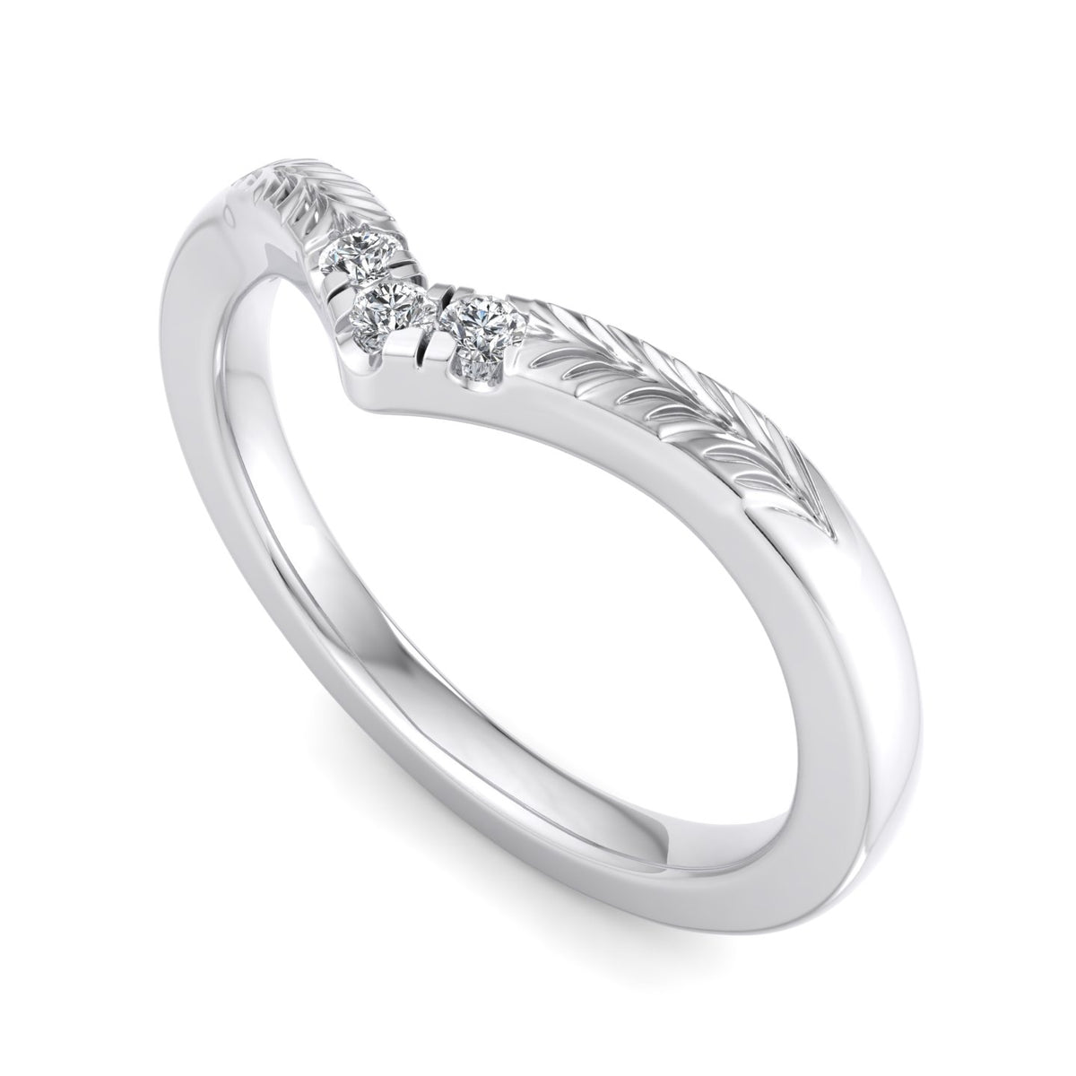 The Trinity V-Ring is a stunning gold ring featuring a unique V-shaped design adorned with three sparkling diamonds. Crafted from high-quality yellow gold, this ring boasts an elegant engraved leaf pattern on its band, adding a touch of sophistication to its overall aesthetic. The V-shape is created by two bands that converge at the front, where three round diamonds are carefully set, creating a beautiful focal point.