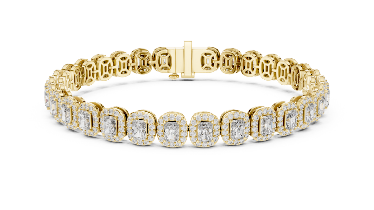 ITEM DETAILS  SKU GLBR-0006 TYPE Brecelet Carat Total Weight 7.04 ct Rhodium Plated Yes Stone Type Natural/Lab-grown/Moissanite 18KT Gold weight...